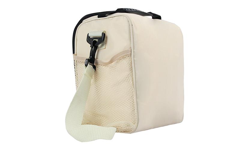 包包頂部的提手設(shè)計(jì)采用織帶加塑料手提配件的方式,使手持更舒適。兩側(cè)的D扣搭配可拆卸可調(diào)節(jié)的肩帶設(shè)計(jì),讓餐包瞬間變挎包,輕松搞定較重物品的攜帶。手提或肩背,任你所需。